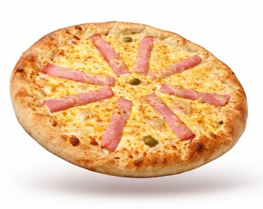 Molho, Mussarela, Rolinho de Presunto c/Catupiry Original, Parmesão, Azeitona e Orégano